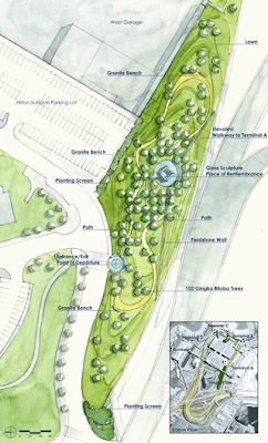 The memorial sits on a prominent 2.5-acre site that is adjacent to a road leading into the airport.